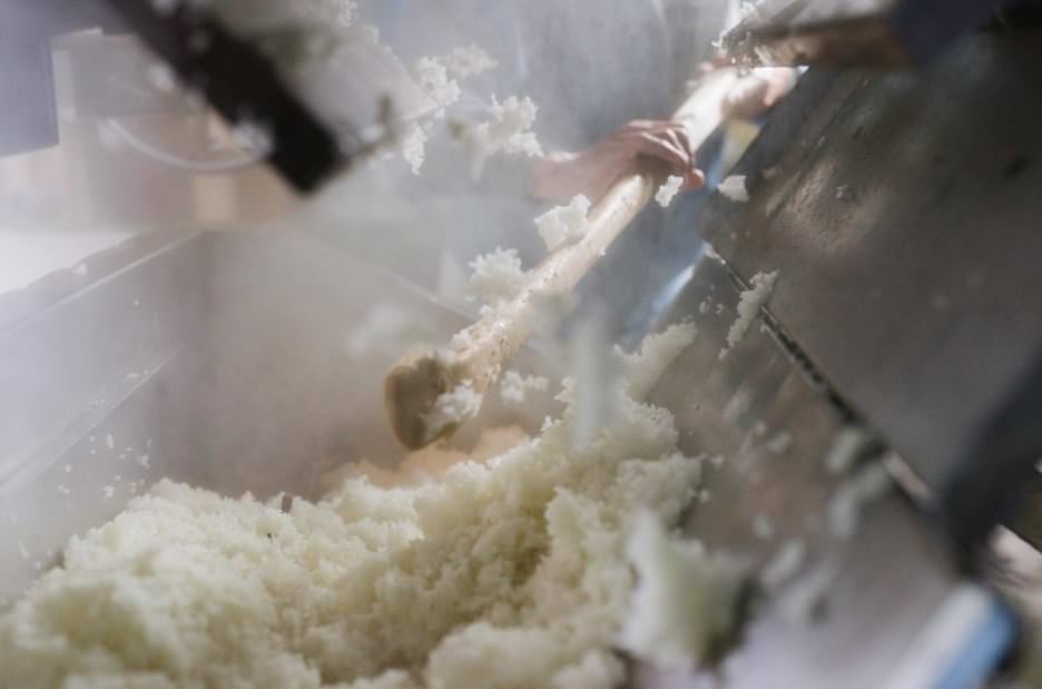 蒸し上がったコシヒカリ